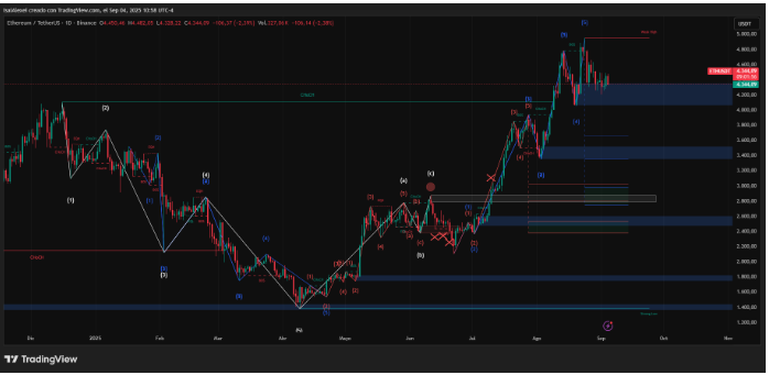 市场的问题是价格。Fundstrat的分析师认为,对代币化证券的需求可能有助于ETH重新测试5000美元的阻力位。Mark Newton预计今年9月将达到5500美元,到2026年初将达到9000美元。