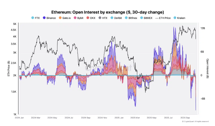 根据CryptoQuant的一份报告,在特朗普总统突然宣布对中国征收关税引发加密市场一连串清算之后,以太坊刚刚经历了其历史上最大的未平仓权益(OI)清洗。