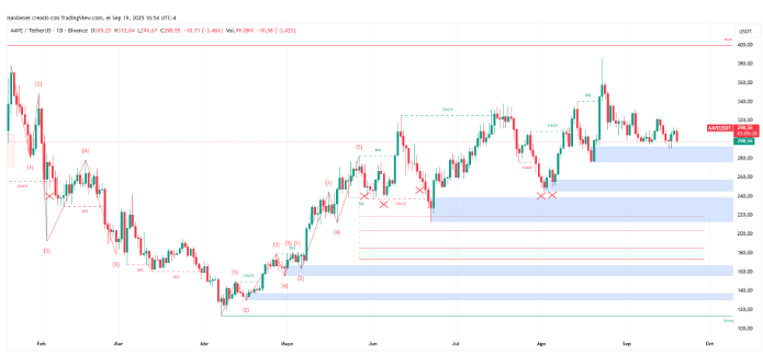 从技术面来看,AAVE在327 - 330美元附近面临阻力,交易商将305 - 312美元支撑区域视为关键水平。如果该区域失败,下一个支撑位在295美元和264美元附近。