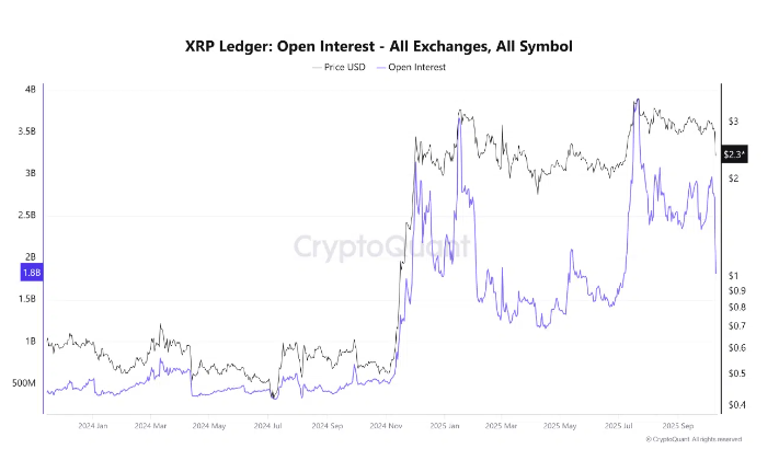 XRP未平仓合约在大规模杠杆冲销后暴跌40%