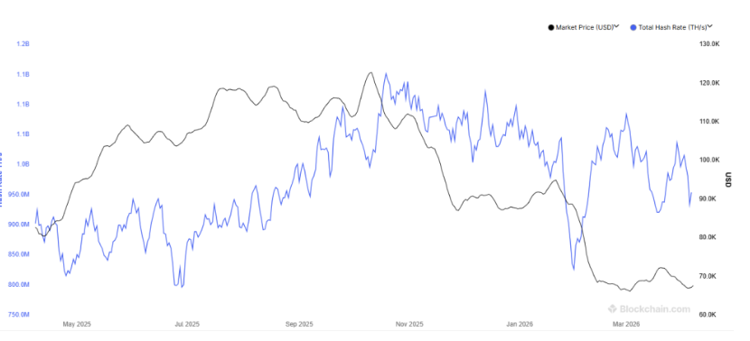 自 2025 年第四季度以来,比特币经历了显著的下跌,因此看到 7 天平均网络哈希率从 1083 亿次每秒(EH/s)的 10 月份降至今天的 953 亿次每秒也就不足为奇了。