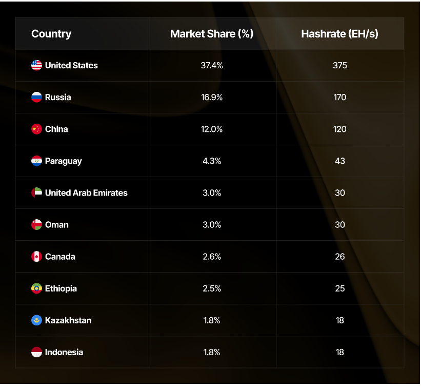 比特币算力仍高度集中,美国、俄罗斯和中国占据 65份额