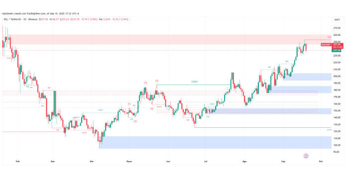 索拉纳最近突破245美元,达到253美元附近的高点,然后回落到目前的水平。分析师认为240美元为关键支撑位,阻力位在250 - 253美元附近形成。如果买家捍卫当前水平,金价可能会重新测试253美元,并瞄准270美元区域。然而,跌破240美元可能导致回调至225 - 228美元。