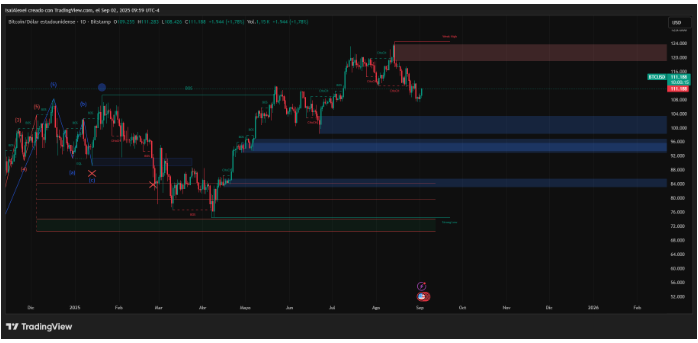 首先,持续回升至112,500美元至114,000美元以上将缓解压力,并为118,000美元打开空间。其次,如果未能持有108,000美元,则有可能迅速下滑至104,000美元,在之前的上涨期间,竞价集中在这里。最后,如果金价跌破10万美元,将把心理锚变成阻力,迫使投资者重新评估杠杆水平。