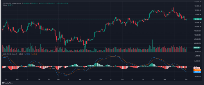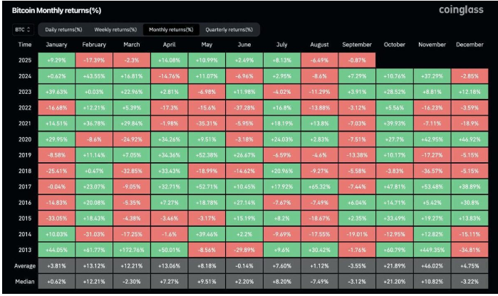 比特币8月收跌6.49%,中断了年中复苏。这一走势逆转了7月份8.13%的涨幅,并符合一个规律:过去五年里,8月份有四年收于红色。因此,交易员在进入9月份时采取守势,观察10万美元区域能否吸收进一步的抛售压力。